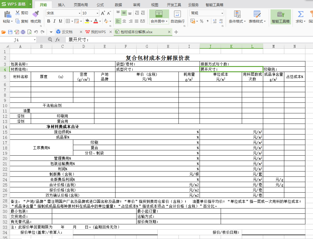 塑料袋材料成本計算公式